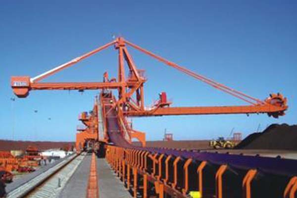 斗輪堆取料機的特征是一個裝有斗輪的牽引機構在散料場地上萬向行走,通過一個輸送臂牽引著軌道行走機構在軌道上滑行。
