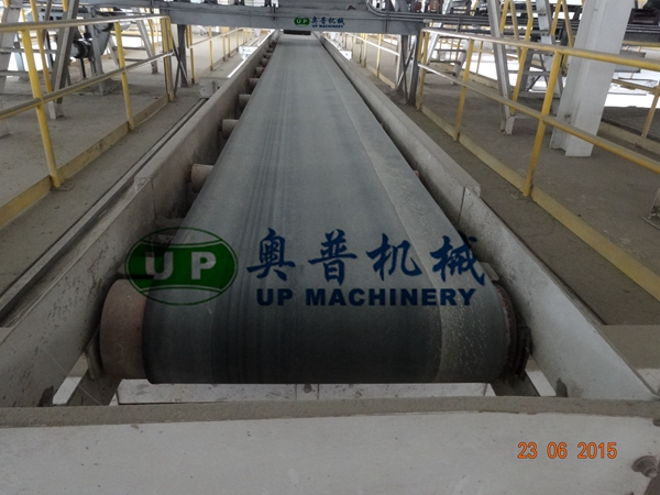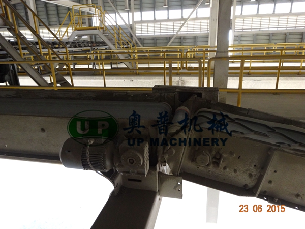 立式膠帶機的兩個擺動極限位置設有限位開關,其在工作和非工作狀態下的定位由限位開關來實現。特殊設計的溜槽能使水泥袋恰好落到接續膠帶機的中心位置。