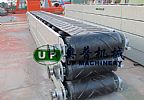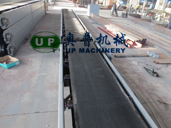 平形膠帶機的支架采用鋼板折彎結構,即美觀又牢固;驅動裝置采用擺線針輪減速機,節省占地面積;張緊方式為中間垂直螺旋張緊,卸袋機構由旋臂立式膠帶機、電推桿和支架三部分組成,當不需要水泥袋從中間位置卸下時,立式膠帶機處于包裝膠帶機的側邊;當需要水泥袋從中間位置卸下時,由電動推桿拉動立式膠帶機使其擺動與包裝膠帶機縱向成交叉位置,并開動立式膠帶機即可。
