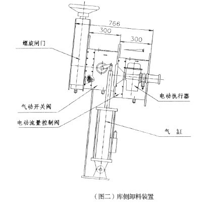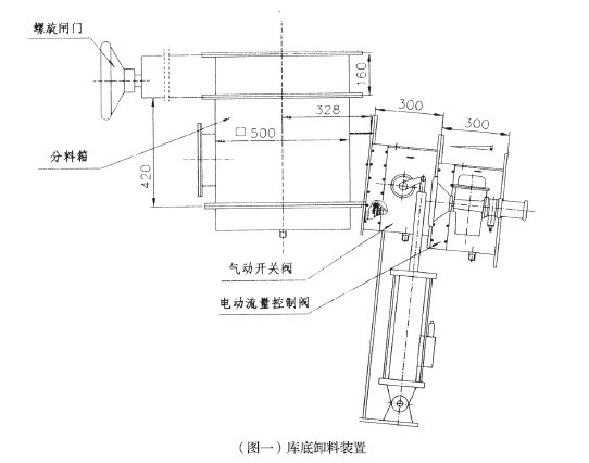 庫底卸料裝置由庫底螺旋閥、庫底分料箱、氣動開關閥、電動流量控制閥及卸料溜子組成(見圖一),用于水泥生料粉或水泥庫底卸料。庫底卸料裝置能自動調節卸料流量且均勻,其結構合理,操作維護簡單方便,可設三個下料口,用戶也可選用庫側卸料裝置(見圖二)。